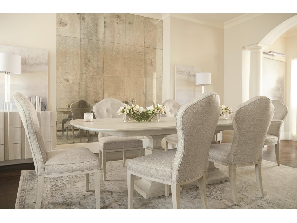 Specifications: This dining table's soft finishes, graceful curves and subtle accents add beauty to its versatile elegance.