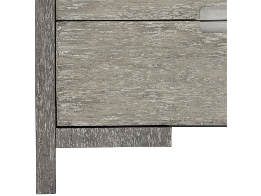 Product Description: Foundations is a new, refined expression of modern rustic, defined by a minimalist style and relaxed finishes. The Foundations nightstand offers tranquility and balance with its two-tone design. Three soft-closing drawers are finished in Light Shale, while the support panels and rails feature a Dark Shale finish. Cerused, wire-brushed acacia reveals a deep, tactile grain. Brushed stainless steel pulls add a subtle accent to the clean, simple form.